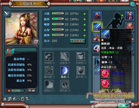 重新返回英雄属性界面,就可以查看和佩戴镶嵌魂石的装备了。镶嵌魂石的装备会根据魂石的属性增加某一方面的属性,如攻击、防御。