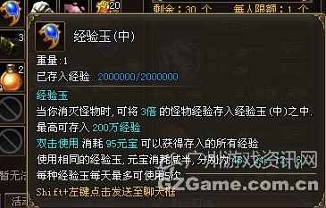 游戏中经验玉是玩家在获得经验的时候为你存储经验的石头,当经验玉存满的时候,就可以打开了,不过需要一定的元宝哦,还好的是花费不多,小R玩家可以考虑考虑。