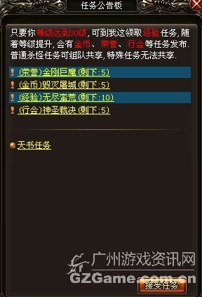 每日必做任务,可以获得大量的经验,是非R玩家获取经验的每日必做任务。玩家可以在任务公告板领取。