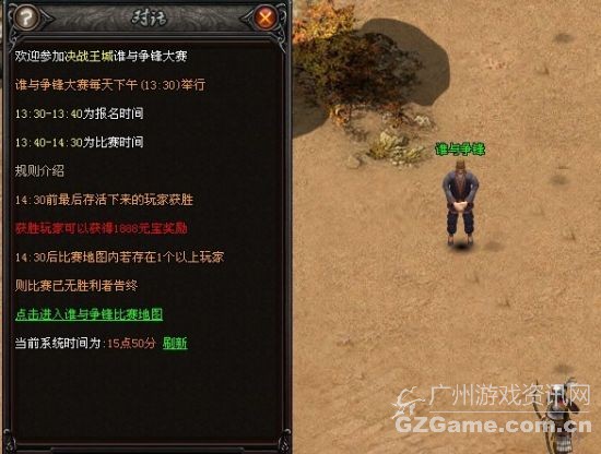 在玩玩网《决战王城》里,每天的14:00开始,等级达到30级的玩家就可以到沙漠城的NPC处报名参加“谁与争锋”终极生存挑战赛。之所以说是终极生存挑战赛,是因为在这场杀戮盛宴中,最终只能有一个人存活下来,他将获得海量的元宝和金币,但更重要的,是这一个异世江湖里最强霸者的盛名!