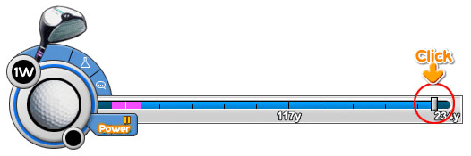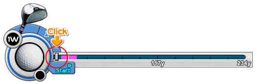 step3:当球杆控制条移到打击标准区“粉红色块”时,看准时机按第三次空格键即可挥杆。正确对准白色线按下空格键,球会飞到正确的距离和方向,但若是偏离白色线,打击方向及球的飞行距离将会产生偏差。